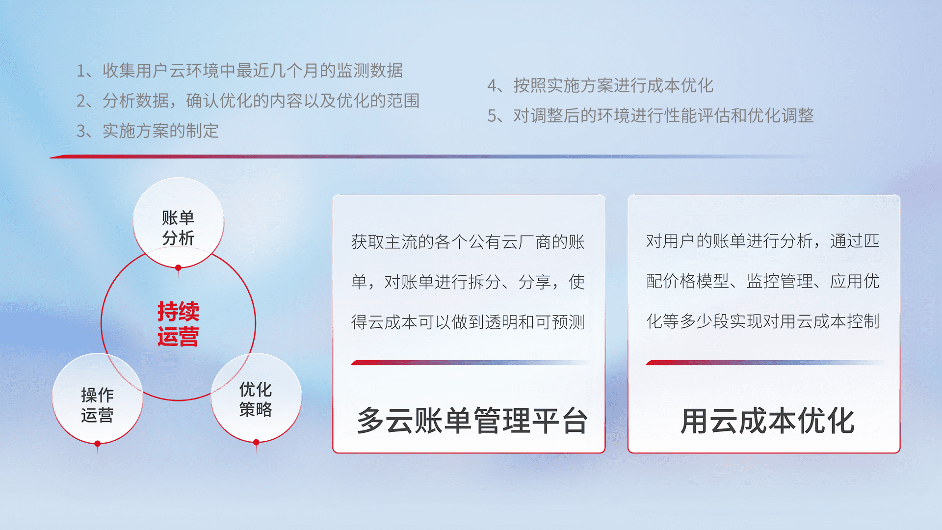 运用智能化工具分析云资源,,提供日常费用可视化工具,,,自动账单拆分,,,成本优化云上费用,,降本增效。。